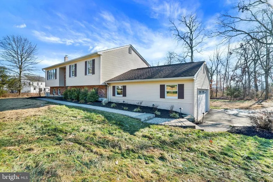 This traditional style Colonial home embodies the serenity of Bucks County yet offers a unique sense of community and belonging with the neighboring homes. The home sits upon 2.181 acres of land in Plumstead Township and Central Bucks School District. This home hosts seven rooms. The kitchen has been recently renovated. White crisp kitchen cabinets, tile backsplash, granite counter-tops, white Blanco farm-house sink, wood floors, pantry, freshly painted and new lighting. The breakfast room is adjacent to the kitchen with new lighting and glass sliding doors that lead out to the deck. The inviting living room is large in scale with a wall of windows, new flooring and fresh paint. Down the hall you are greeted with two generous sized bedrooms both with ample closet space, new flooring and fresh new paint. Both secondary bedrooms share a full hall bath. The main bedroom offers new flooring, generous sized closet, fresh new paint, new ceiling fan and a full bath. The family room is located on the lower level of the home. It showcases exposed beams, a handsome wood burning fireplace, rustic wood trim, new carpet and fresh new paint. Off of the family room is a large bonus room with custom built ins, half bath, laundry room, bar area and private entrance. This area offers possibilities such as, an in-law suite, home office or gym. The grounds are beautiful with paver walkways, exterior lighting, planting beds, large paver patio and a park like setting of beautiful land and views. A shed for additional storage, a generator, gas line for your grill, and a two car garage that completes this home.