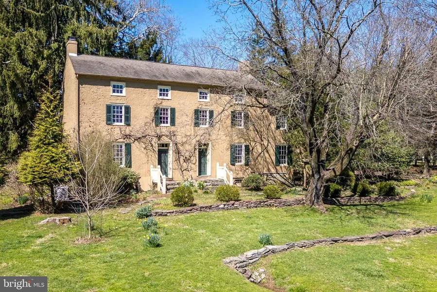 Welcome to Broadview Farm! Nestled in the tranquility of Buckingham Township, Bucks County, Pennsylvania, this timeless Federal-style home dating back to circa 1730 offers a retreat from the ordinary. Set on 10.9 acres, this remarkable property boasts the main house, an icehouse, a pool with pool house and a barn featuring 3 separate apartments. Surrounded by specimen trees and vibrant flowering bushes, including forsythias and enchanting magnolia trees, the setting is truly park-like. As you step into the 2700 sq. foot plaster over stone farmhouse, the spacious rooms greet you with warm Pumpkin Pine and Oak flooring and the light is spectacular. Many original features remain including built-ins and hardware along with wide windowsills adding charm and character throughout. The bright and cheerful kitchen is the heart of the home with a charming walk-in fireplace and spacious enough for a grand table or an island. Other built-in cabinetry and storage space abound. The living room features a wood-burning fireplace and cozy seating area along with a more formal dining area for entertaining. Double doors open into the cozy family room - a superb place for reading a good book. Conveniently located on the first floor is a laundry/mud room that provides outside access. A full bathroom with tiled, steam shower completes the main level. Upstairs, three spacious bedrooms with wood flooring await. Each room offers plenty of light. Two bedrooms, one being the primary, offer wood-burning fireplaces. The third bedroom has an ensuite bath with shower. The hall bath has a cast iron clawfoot tub reminiscent of the Victorian era. The third floor offers 2 additional bedrooms with a center room for lounging or use as a computer area. All pine floors under the carpeting. There are 5 heating zones, and a new oil furnace was installed in 2023 with a transferable warranty. The whole house automatic generator is serviced by natural gas, and gas ports were installed with the forethought that any appliances or utilities could easily be converted. The grounds surrounding are magnificent, with stone walls, wrought iron railings and gate, mature landscaping, flagstone walkways and patio areas and room for outdoor entertainment. Above the back door a nostalgic emblem harkens back to yesteryear, signifying the payment of fire insurance and ensuring assistance from the fire department. Both the pool house and attached screened porch offer a welcome retreat for lunch or dinner parties or simply relaxing with a good book and a glass of your favorite wine. The small garden shed beyond the pool house is adorable with cedar shake roof. The barn has at least 3 stalls that would accommodate horses or other livestock with plenty of fenced pasture. 5 miles to either New Hope or Doylestown, 7 miles to Newtown. Easy access to major commuter routes to NY, NJ and Philadelphia. Award winning Central Bucks School District or enjoy one of the many prestigious private schools in the area. This property epitomizes the quintessential Bucks County lifestyle--schedule your private showing today.