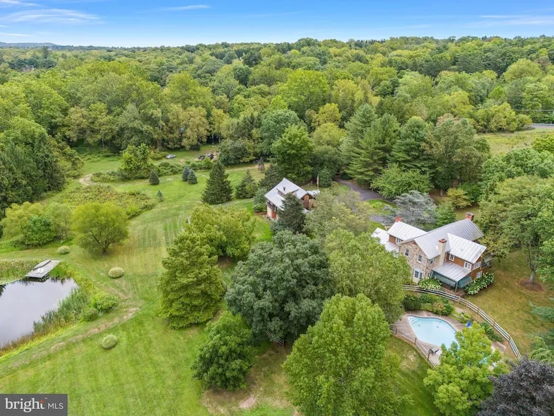 Nestled on over 19 acres across three parcels, this exquisite property offers a rare blend of privacy, charm, and modern amenities. Featuring a 3-bedroom, 2.5-bathroom Bucks County stone farmhouse, Plus a 1,000 sq ft cottage, and a wealth of outdoor features, this property is a true sanctuary in Wrightstown Twp. Built-in 1984, the main house welcomes you with a spacious front porch leading into a warm and inviting family room with a gas-stone fireplace, custom built-ins, and beautiful wide plank flooring. Just down the hall, you'll find a cozy den with a powder room and French doors opening to a private rear patio (12 x 15) that overlooks the sparkling inground pool perfect for entertaining or enjoying a peaceful evening. The large kitchen boasts stainless steel appliances, Bucks County soapstone countertops, and a Sub-Zero refrigerator, updated in 2020. A convenient mudroom off the kitchen provides easy access to the side yard. The dining room is adorned with charming wooden beams and a wood-burning fireplace, while the adjacent office, with a private entrance, overlooks the picturesque barn. Upstairs, discover three generously sized bedrooms filled with natural light. The primary suite offers a spacious bedroom with a large ensuite bath, radiant flooring, and easy access to a walk-up attic. Two additional bedrooms feature neutral paint and lovely views from every window. The hall bath offers radiant flooring and a double-bowl vanity. The expansive grounds include a huge barn for additional storage, several sheds, a kennel with three runs, and a serene pond. The property backs to Mill Creek, offering stunning views and an abundance of wildlife to enjoy from every window. On a separate 1.86-acre parcel, the charming 1,000 sq ft cottage includes its own septic, well, and electrical systems. Inside, find a full-size kitchen, a large living room with a wood-burning fireplace, a main-floor laundry area, a full bath, and a loft space. Step outside to a spacious private deck, perfect for relaxing or hosting guests. This unique property is an ideal retreat for those seeking privacy, space, and a taste of Bucks County living. Conveniently located 10 Minutes from Newtown Borough and 15 minutes from Doylestown Borough. Council Rock High School North, Newtown Middle, and Wrightstown Elementary. Don t miss the opportunity to make 980 Mill Creek Rd your new home! Agent related to seller.
