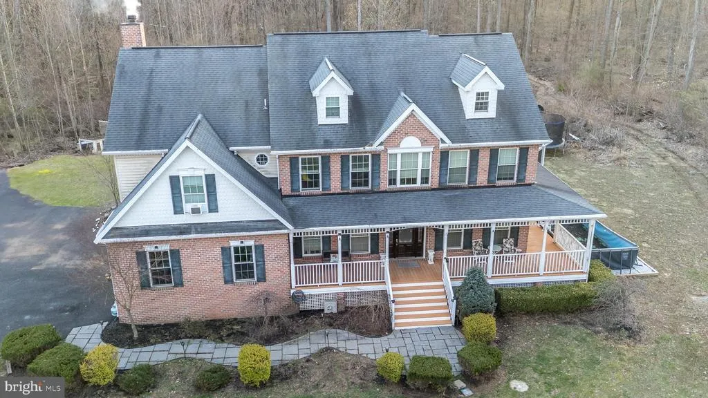 Room to roam inside and out! A gated driveway leads you to this 4000+ sq. ft home on 28 acres in beautiful Upper Bucks County. You are greeted by a wrap around covered porch with an integrated gazabo over looking the private rear yard and woods. Wood floors run throughout the main level which has an office with French doors, formal living room and formal dining room both with crown moldings. The kitchen has an island with seating, granite counters, tile backsplash and breakfast area with a door opening to the large patio. The open 2 story family room has a fireplace with wood burning insert and a wall of windows. There are 2 stair cases to access the second level where you will find the master bedroom with 2 walk-in closets and a master bath with jacuzzi tub, tile stall shower, tile floor and double sinks. There are 3 additional bedrooms on this level and a hall bath. The walk up third l...