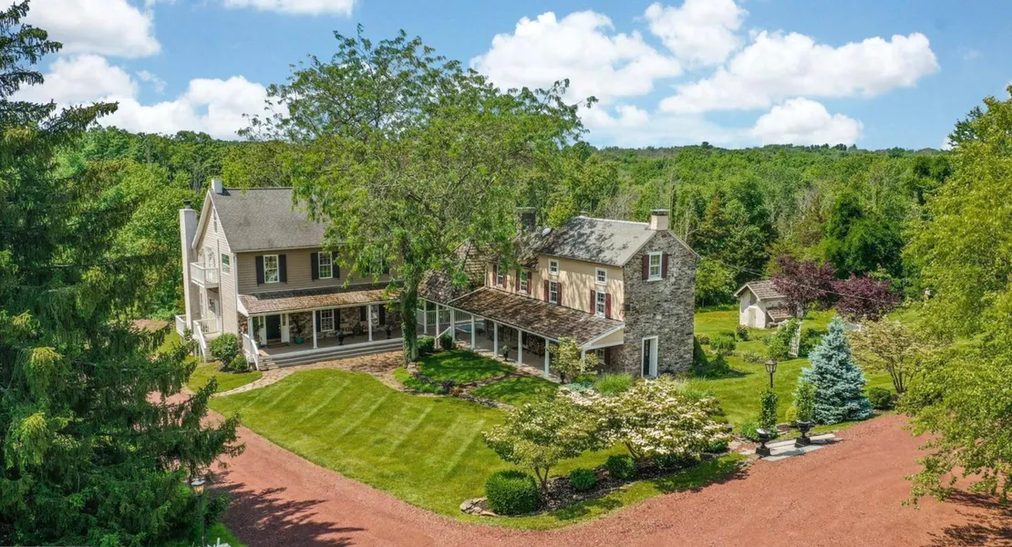 Presenting Fox Hollow Farm, a wondrous homestead spanning 38 acres in the heart of Bucks County, PA. Rarely does a property boasting such significant acreage become available, especially when located only minutes from the center of town with development possibilities. Positioned down a private gated driveway are not one, but two contiguous country homes, offering creative living arrangements for a prospective owner. The original stone farmhouse dates back to 1806, showcasing charm within cozy living quarters inclusive of a fireplace, kitchen, two bedrooms and a third floor flex space, which can be utilized as an office, studio or additional bedroom. The front porch graciously connects the "twin" homes and also features a sunken hot tub, pleasurable to utilize during any season. The second residence was custom built in 2006 and features pine hardwood flooring, 18' cathedral ceilings, crown molding and is bathed in natural light from every angle. The 2-story great room overlooks the picturesque grounds and offers an abundance of space for gatherings. Ascend to the second level to discover a primary suite which overlooks the great room and a guest bedroom suite with pasture views. The property is not under any conservation restrictions and developers are encouraged to complete their own diligence. Whether you are interested in exploring luxury new construction options, or have been on the search for an idyllic country retreat, or perhaps a farm enthusiast interested in acquiring additional land for grazing purposes, Fox Hollow Farm certainly offers something for everyone. Professional photos coming soon. Showings to begin 5/10/25.
