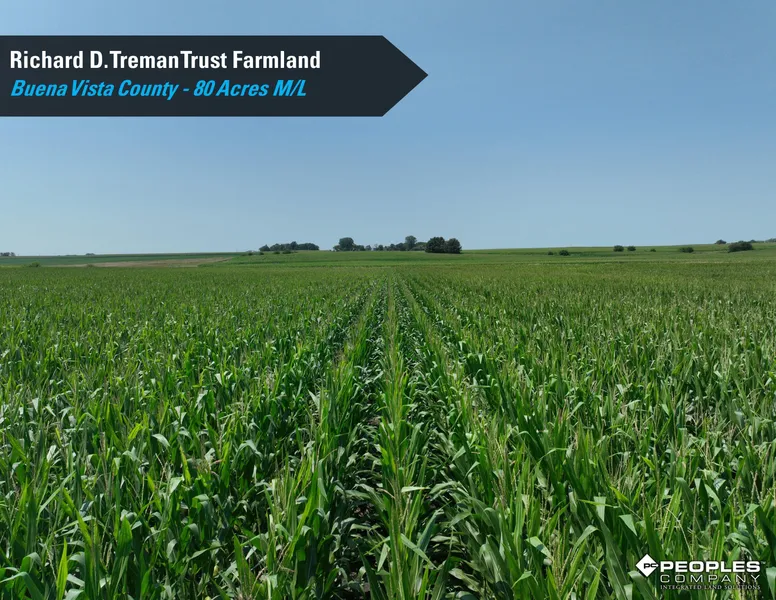 Peoples Company is pleased to present 80 m/l acres of farmland in Buena Vista County, Iowa located northwest of Marathon, Iowa along County Highway M54. The farm includes 73.4 FSA cropland acres with a CSR2 soil rating of 83.6. The cropland acres are designated NHEL with no conservation plan required. The balance of the tract is well-maintained grass waterways bordering the drainage ditch that runs through the farm. The tillable acres include highly productive Calco silty clay loam, Clarion loam, and Nicollet clay loam. The farm is located in Section 17 of Poland Township, in Buena Vista County, Iowa.