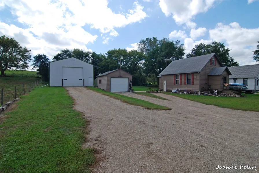 Country Living on the edge of town. This home sits just outside of city limits on the east edge of town, although it has city water, trash pickup. This little gem is bordered by cattle pasture on 2 sides. You will love the privacy and country feel of this home. The Machine Shed (30 x 50) is insulated, heated, has cabinets, overhead storage loft and floor drain. Great for the Trucker, Wood Worker or Race Car Driver who likes to work on his own projects. Over half acre lot allows you to have chickens or small livestock. The home is a cute little 2 bedroom with a finished basement where you could add another bedroom if you like. Rustic feel with a very nice kitchen and bath. Call now to see this home!