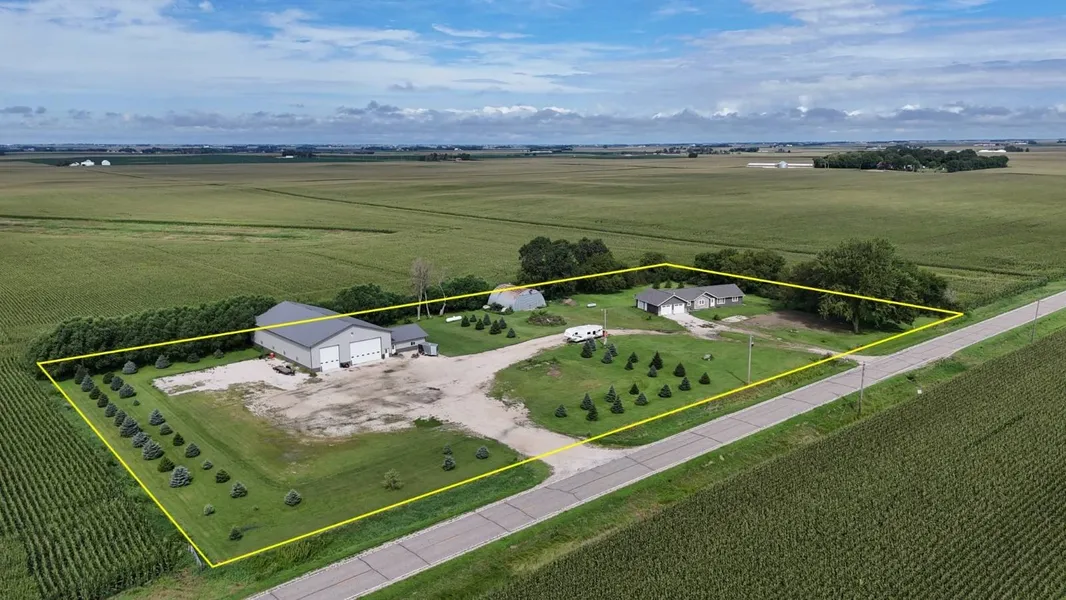 You won't want to miss this one! Built in 2021, this newer ranch style home offers 1807 sqft of living space on the main floor. The open concept main floor features a spacious kitchen with a large island with seating and a walk in pantry, dining area, and living room. The master suite boasts a large living room with a walk in closet and a master bath with his & her sinks, soaker tub and shower. The main floor also offers 2 additional good sized bedrooms, full bathroom, and a laundry room with plenty of storage! The basement is ready for your finishing touches with egress windows, a roughed in 3/4 bathroom, and plenty of additional space for family room, storage rooms and much more. The home also has a large 3 car garage and a beautiful rear deck peacefully overlooking the back yard. That's not all this place has to offer! You will also find an AMAZING 60'x104' shop with 3 overhead doors, floor heat, and a 32'x32' addition that has a heated & cooled office, 3/4 bathroom, laundry, and a large parts room. The property also has a 32'x32' Quonset building making this property an outstanding opportunity! All of this sits on approximately 4.75 net acres and just a few miles from Newell and a short drive to Storm Lake!