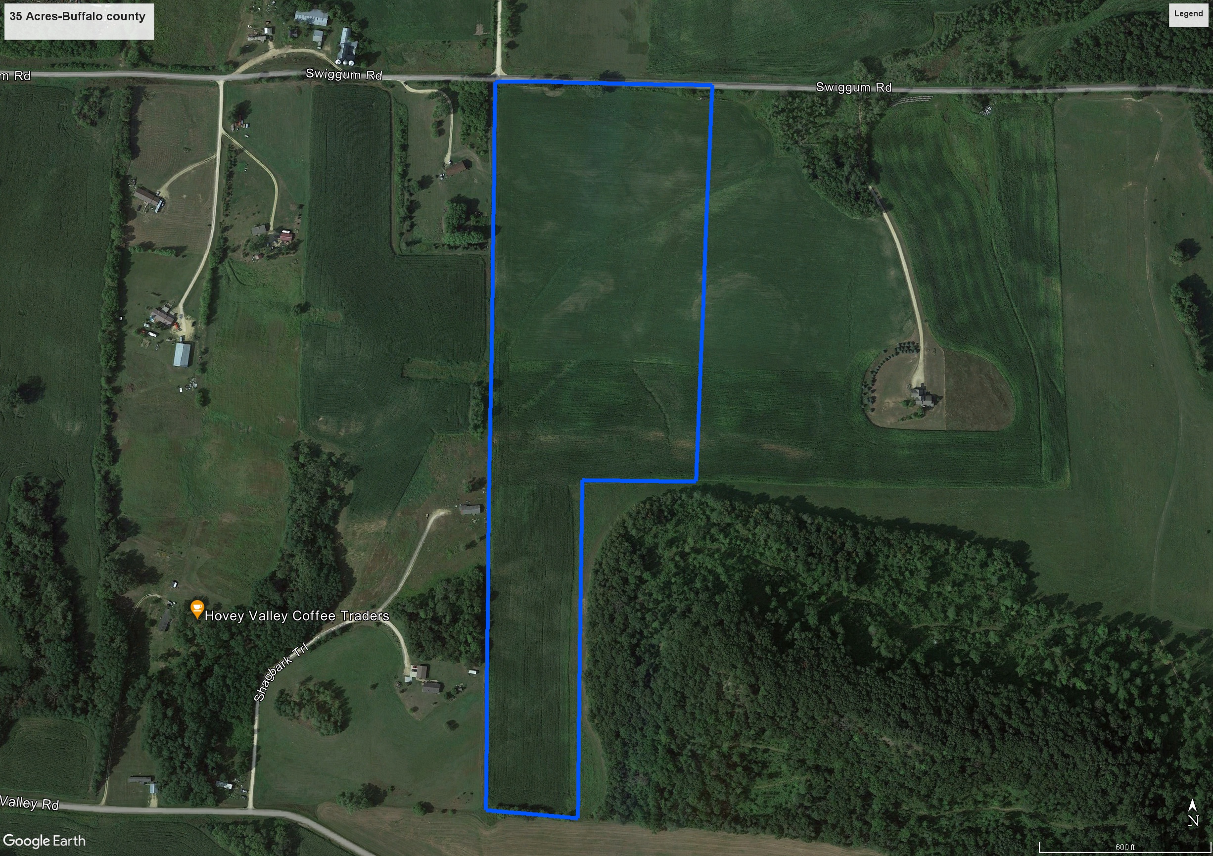 Very rare 100% tillable piece of property located in Northern Buffalo County. Property has rolling topography, along with an incredible build site with stunning views of the country side. The Southern portion of the parcel is ideal for a food plot to catch deer coming off the bluff to the East. Property provides good income, and is a great investment. Only 10 minutes to Mondovi, this is a quality property in an ideal location to build your dream home on.