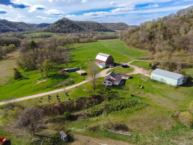 Story book setting is what you will find when you drive down the country road to this 15 acres hobby farm located in valley setting; creek running through the property; just 5 minutes to Fountain City, Wi & short drive to Winona, Mn. Perfect opportunity for you to have your country dream! Bring those horses, chickens, beef. 3 bdrm/1.5 bath farmhouse has been renovated through the years and is in excellent condition. Home also has a pioneer log cabin in part of the home. Heated garage, large pole shed, old dairy barn, beautiful pasture and alfalfa field, deer and turkey are abundant! Pride of ownership shows throughout this property and has been in the owner's family for many years. Sellers are downsizing, rare opportunity to buy a property like this! Pre-Approved buyers only please.
