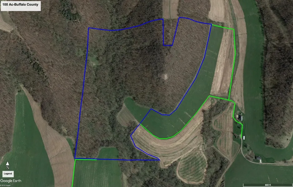 Approx 100 acre hunting property located in the heart of Buffalo County near Urne. 4 acres of tillable ground is left in corn and soybeans for the deer, and a 1 acre kill plot located in the NW corner of the property is a hot spot. A trail system throughout and 3 waterholes that are perfect spots for ambushing a mature buck. Property is surrounded by large tracts of timber and is located in a QDM neighborhood, some world class deer live in the bluffs near Urne. Property sets up incredibly well for low impact hunting with 3 different access points to keep the deer in the dark during entry and exit. 2 very impressive bucks were shot on property Fall of 2019. Power has been run to the southwest part of the property for a cabin or camper.