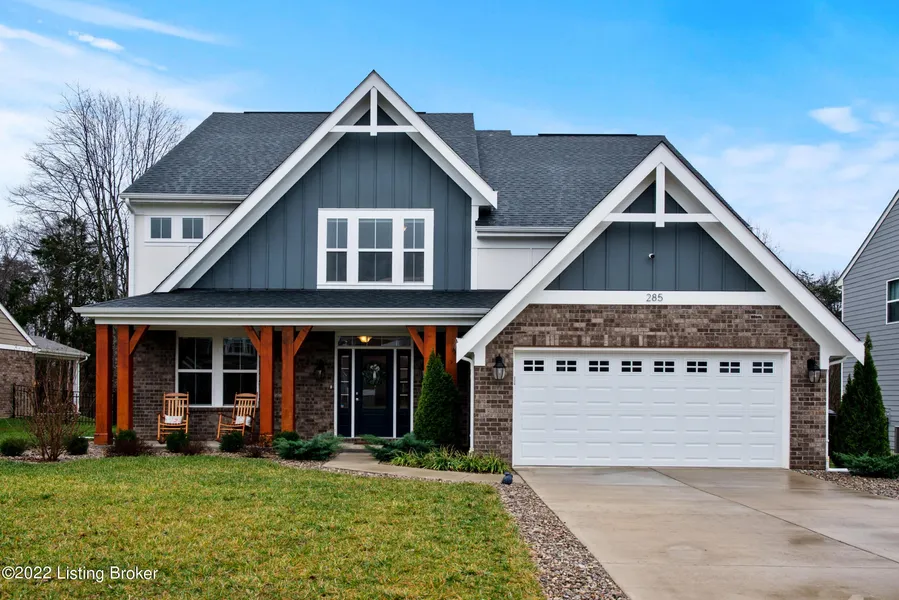 Don't wait to build when this gorgeous 2 yr new home is move- in ready in the River Crest neighborhood. Beautiful engineered hardwoods and neutral wall color greet you at the front door and extend into the bright white kitchen complete with chevron backsplash, quartz counters, pantry, gas cooktop and stainless appliances that all remain. The large kitchen island is perfect for entertaining and can seat 4 comfortably. The 2 story great room has a wall of windows with privacy shades that overlooks the wooded backyard and a huge stone gas fireplace to keep you cozy on winter nights. For those that work from home , there is a spacious office as well as a mudroom on this floor. Walk down a few stairs to the carpeted lower level and find a second family/play/exercise room with large