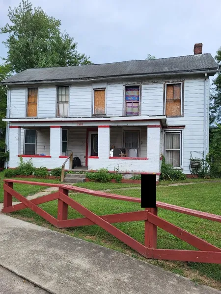 House in bad repair, could need removal. Corner lot in commercial district. Material can be salvaged. Behind St. Benedict Church.