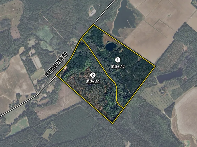 roads throughout. This tract has a large elevation change that is very unique in Bulloch County! In our auction, you can bid on each tract independently or as a whole on the final day of bidding. If you have any questions, please reach out to me.