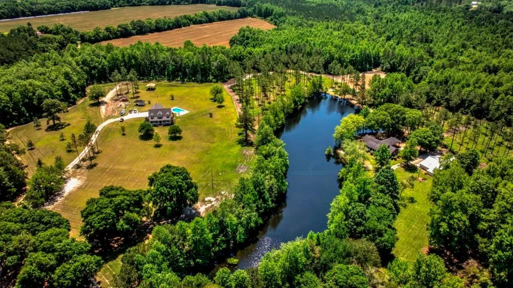 This property features two homes. A 2983 square foot main home sits atop a large open area, which gently rolls down to the 3-acre pond. This home features an in-ground pool, covered carport, several outbuildings, and much more. The inside consists of 3 bedrooms & 2.5 baths, along with a beautiful kitchen & dining room. Down the hill, overlooking a 3-acre pond, sits a 2100 square foot home, featuring 3 beds & 2 baths. It would be a perfect mother-in-law house and/or main house. Although a 1996 built home, it will impress just as much as any home built today. Excellent features are found inside the home, but the sunroom with a picture-perfect view of the pond will take anyones breath away, and can only be appreciated in person. There is a large outbuilding that sits just behind, and it has a small suite inside. The improvements on this property are unmatched, and it is tough to find the words for what all this property has to offer. You truly must come see for yourself.