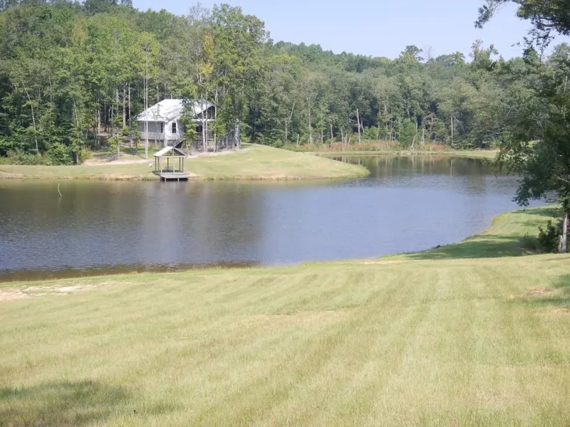 There is a picturesque 6 acre Horseshoe Lake stocked by American Sportfish withTiger Bass, Bream, Shad, and Grass Carp. The lake is managed by American Sportsfish on a quarterly basis. The setting was well planned as the newly constructed lodge hovers above with views in three directions. A nice boathouse is an added bonus.
