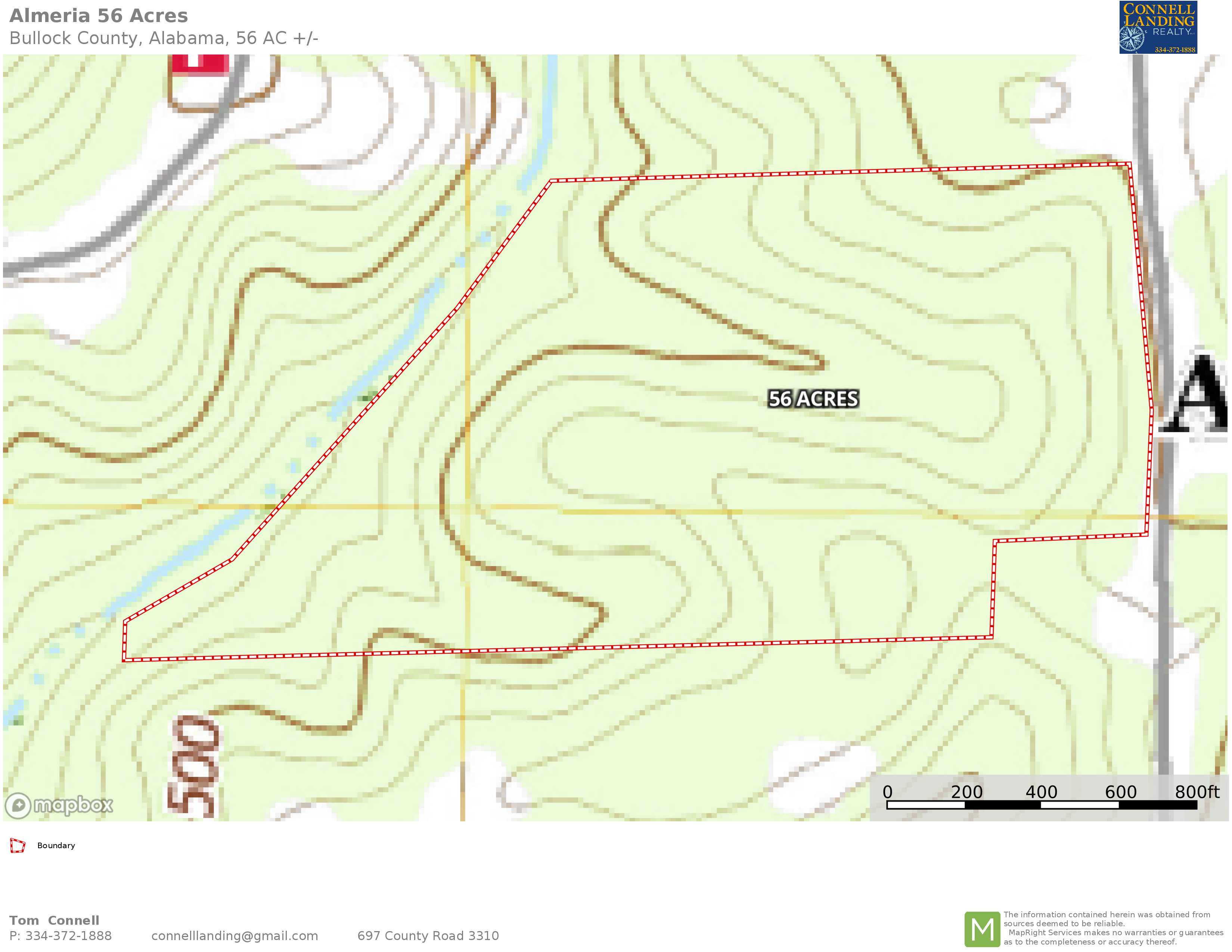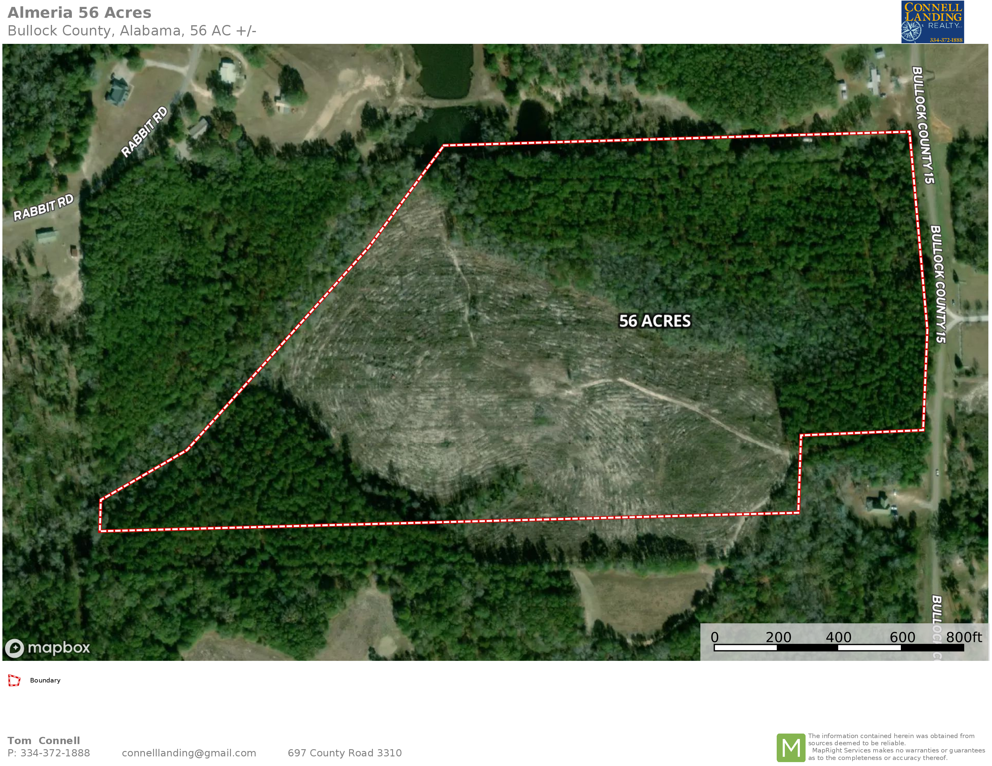 This 56-acre has over 900 ft of paved road frontage on Bullock County Road 15. It has about half-planted pine that is about 6 years old. It has a spring that runs west towards a larger stream that makes up the northern boundary of this nice property.