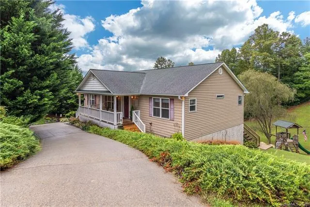 Ultimate family home with incredible outdoor living spaces, long range winter views and playgrounds for the both the young ones and adults. From the quaint front porch you enter this home into the living room of this open concept home with gleaming hardwood floors, a vaulted ceiling and a fireplace to warm you during the winter months. Split bedroom floor plan with sizable bedrooms. The master en-suite is large with ample storage, water closet, laundry closet and walk in clothing closet. The light filled kitchen with breakfast bar has all new stainless steel appliances purchased in 2019. Lovely covered porch off of the dining area that overlooks a well groomed, sloping yard with a playground for the little ones and a fire pit area for the adults. Large finished lower level with a spacious family room/flex space with a second fireplace, full bathroom and second outdoor living space including an outdoor shower. Oversized two car garage has ample storage space for your cars and toys!