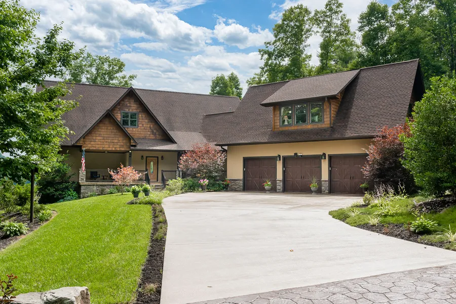 This stunning custom-built home is located in the gated community of Versant with year-round mountain views. With over 7,000 square feet, there is plenty of room to spread out. A large bonus room over the three-car garage allows for a perfect flex space ideal for an exercise room, home office or playroom. Each floor has its own full kitchen, bedrooms and living space. The main floor kitchen has a large island with seating, a breakfast nook, a large walk-in pantry and an adjacent formal dining room. The living room overlooks the spacious, covered back deck perfect for morning coffee. The master bedroom on the main features two walk-in closets and an en-suite bath with a soaking tub, walk-in shower and double vanity. There are beautiful wood floors throughout, accented with tile. One-of-a-kind, level mountain lot with plenty of green space to enjoy play and gardening. Enjoy a soak in the hot tub and time by the fire pit. Only 15 minutes to downtown Asheville or Weaverville.