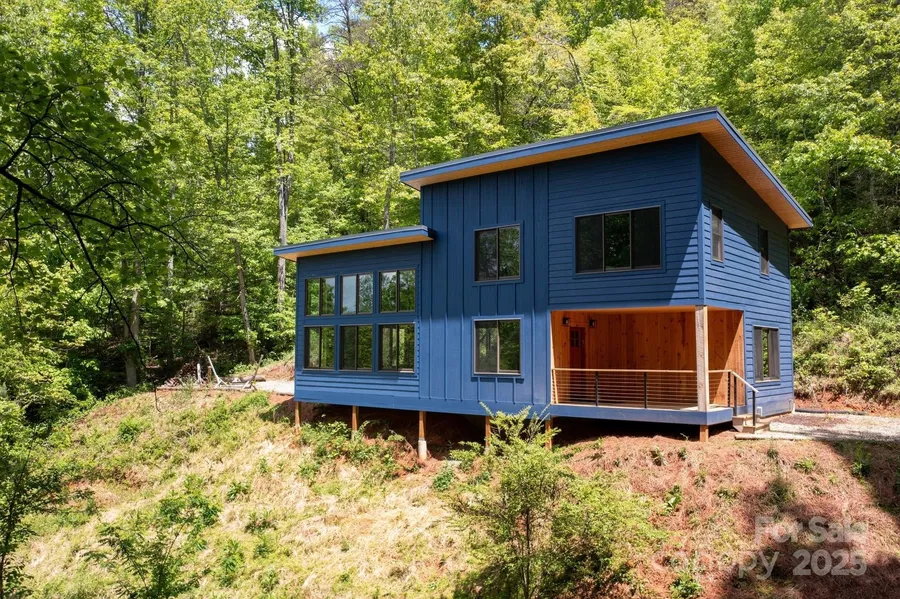 Back on market at no fault of property - buyers contingent offer fell through. Silver lining - Spectacular winter long range mountain views are now visible from the main house!! Nestled in the Blue Ridge mountains, this custom built home offers true retreat. Meticulously designed to bring the outside in, large picture windows bathe this home in natural light. Solid oak floors and wood ceilings anchor the quality of finishes throughout. Stay cozy year-round with a centralized wood-burning stove. Unwind on the covered front porch or back patio with firepit. Enjoy foraging for raspberries/blackberries. This unique 7.66-ac lot borders Sandy Mush Game Lands and includes a second build site with long range mountain views, driveway, electric, and individual well/septic in place. Hike out your door to over 200 acres of national forest. Form meets function with solar ready roof, double wall insul...