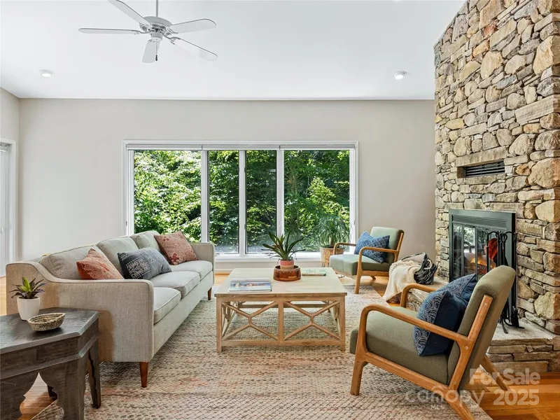 Nestled on nearly 1.5 private acres in the coveted Sondley Estates, this stunning Asheville home offers the perfect blend of luxury and tranquility. A picturesque waterfall cascades down a rock-faced creek, creating a serene backdrop for your dream retreat. Inside, you'll find hardwood floors and soaring vaulted ceilings complemented by a cozy stone fireplace with a custom mantel. Step outside onto multiple decks to soak in the natural beauty surrounding you. This home boasts numerous upgrades, including a new HVAC system (2023), roof (2023), radon mitigation system (2023), and a new water heater and disposal (2025). Enjoy peace of mind with a security system, and relish the convenience of primary his-and-her custom closets, updated bathrooms, and a modern kitchen. A sunny office with pocket doors provides the perfect workspace. All of this is just minutes from downtown Asheville, where you can explore vibrant dining and cultural attractions. Don't miss this exceptional opportunity!