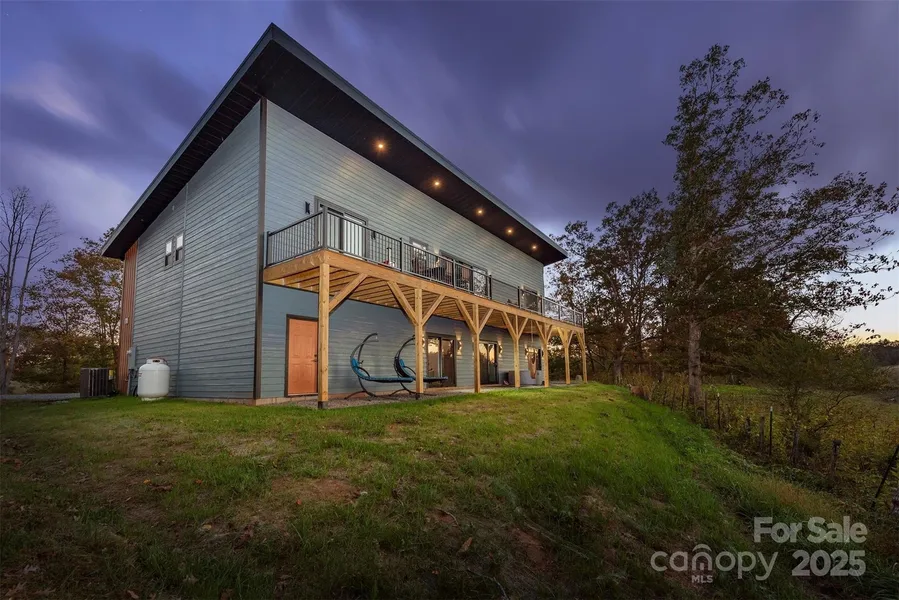 NEW CONSTRUCTION - MUST SEE! Just 10 mins to downtown Weaverville and 20 mins to Asheville, this modern country home is set on 1.96 acres with a pasture area, Open Use zoning, and an easy-access driveway. The upstairs features soaring 16' ceilings, an open-plan living-dining-chef's kitchen with high-end appliances including a 48" dual fuel range with double ovens, grill/air fryer, pot filler, drawer microwave, whisper-quiet dishwasher, auto-open refrigerator, custom coffee station, and gorgeous quartz and soapstone countertops. Matching soapstone vanities are found throughout the home. A TREX deck extends the living space outdoors. On this level, you'll find two ensuite bedrooms on one side of the home, while the large primary suite occupies the opposite wing with a spa-like bath featuring a huge walk-in, walk-out shower for two, soaking tub, and custom closets. The office, pantry, half bath, and laundry complete this floor. Walk down the custom oak staircase to the lower level, where you'll find a two-car garage, gym, large 4th bedroom with a custom-designed bathroom, huge utility/storage room with dog washing station and second laundry, plus an expansive 30x18 flex area perfect for a game room or theatre. Step outside to the hot tub and take in the views. Additional highlights include all bathrooms with built-in Bluetooth speakers, oversized Pella impact windows and doors that frame the mountain ranges, designer lighting and fixtures, custom closets and laundry on both levels. This exceptional property offers both privacy and convenience. Optional Catalina swim spa available! Your move-in-ready mountain retreat awaits!