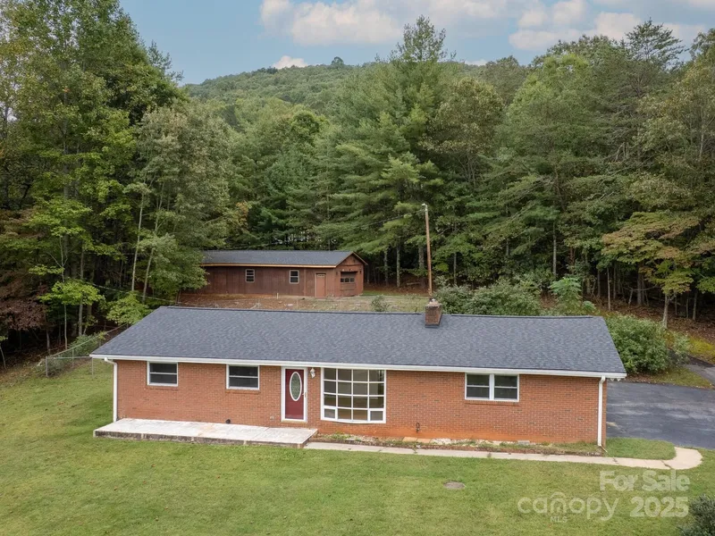 ***Actively seeking backups***. This well-loved 3-bedroom, 2-bath brick rancher sits on a spectacular piece of property with beautiful long-range views. She's been freshly updated with a brand-new roof (July 2025), a fresh coat of paint, and newer windows, so some of the big things are taken care of. The sunroom is the heart of the home-a huge, light-filled space under a giant skylight. It's just waiting to be your cozy reading spot, plant jungle, or maybe both. Out back, there's a massive workshop/studio/garage with its own driveway (shared with the main), ready for tinkering, creating, or storing all the toys. The backyard is fenced and perfect for Fido-or the neighborhood kids who come over to play. There's a sweet garden plot already in place, plus butterfly bushes that keep the yard buzzing with color and life. Life here feels peaceful and tucked away, but you're not far from it all: just 5 minutes past Biltmore Lake, 15 to West Asheville, 20 to downtown Asheville, and 30 to Waynesville. And don't be surprised when your new neighbors-deer and turkey families-drop by to say hello.