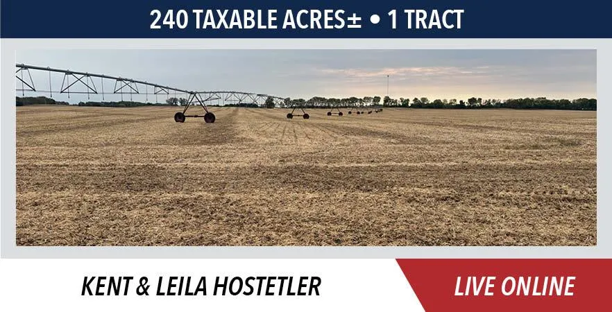 The Hostetler farm will be sold on a price per acre basis, based on taxable acres.
