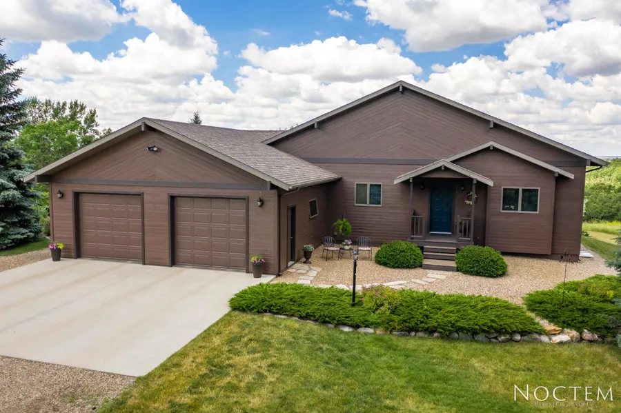 Astounding views are just one of the highlights of this home for you, your family and friends to enjoy. Inspiration awaits both inside and outside.Many recent quality updates abound. You will enter to gorgeous new Plank Flooring in the foyer, kitchen, and great room - whose soaring, beamed cathedral ceiling is enhanced by custom architectural windows. The view over the Missouri Valley is simply spectacular! There is new carpet in the main floor Master Bedroom, new flooring in the Master Bathroom as well as dual vanity sinks with quartz counter tops, new fixtures, and a contemporary soaking tub. The master bedroom also offers a private entry to the deck with breathtaking views to accompany your morning coffee and glorious evening sunsets.The kitchen is a chef's dream - stainless steel appliances, granite counter tops, kitchen island and plenty of cabinets - hand crafted by Klementson Woodwork.The exterior has been freshly painted and it is beautiful!This home is meticulously maintained and landscaped to perfection. There is a pond, garden, potting area and gravel walkways for relaxation.The main floor laundry/mudroom is just off the impeccably cared for garage. The lower level (8 ft ceilings) fills with light from the walkout doors and egress windows - in all three bedrooms. The walkout patio is covered and there is a fire pit area. The Spacious family room has a gas stove with plumbing for a wet bar. Dual zone heating system, April Aire, Exterior walls 2 X 6 construction with R 21 insulation R 50+ insulation in home and garage attics. Garage has water, floor drain, insulation, and electric heater. The property is its own subdivision and is ZONED FOR 2 HORSES. A 2400 sq. ft. shop could be built with appropriate permit.No Open Houses - private showings only so please call your Realtor to experience this one.'