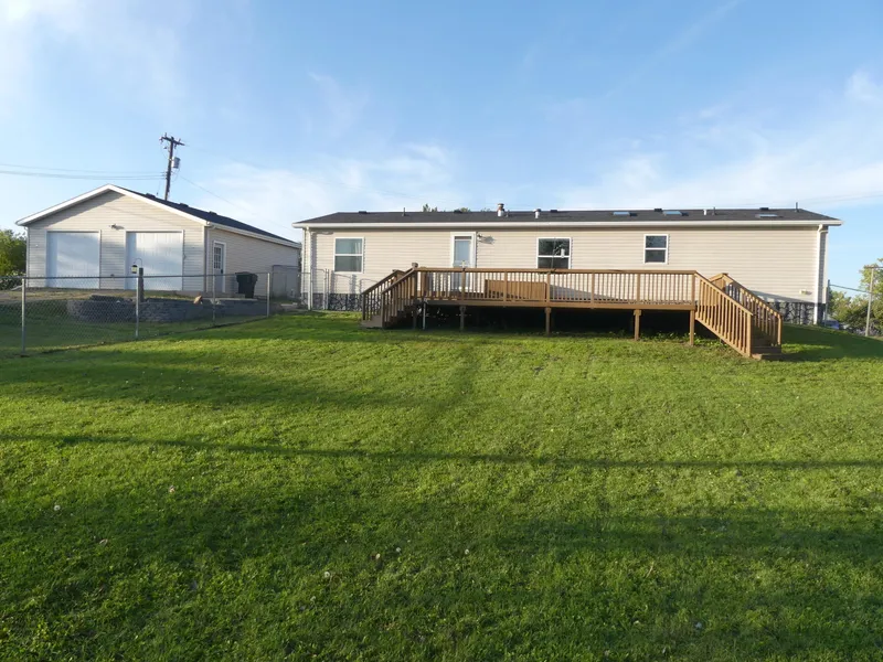 Located on just under an acre of owned land, this manufactured home offers easy one level living & has a great floor plan. The interior features include a large kitchen with many cabinets, stainless steel appliances, gas range, & 2 skylights that provide great natural light. The living room has hardwood floors & glass doors leading to the office. Located in one end of the home is the master bedroom suite with an updated 3/4 master bathroom that offers a newer vanity, newer flooring, & walk-in shower. On the other side of the home, there are 2 additional bedrooms & full bath. There is also a mudroom with main level laundry. The exterior features include a large fenced yard with a shed, huge 16'x30' deck, 2-stall 28'x30' heated & insulated garage, 45'x26' shop with large overhead door, fruit trees & flower beds. Driscoll is only 30 miles from Bismarck & located just off I-94.