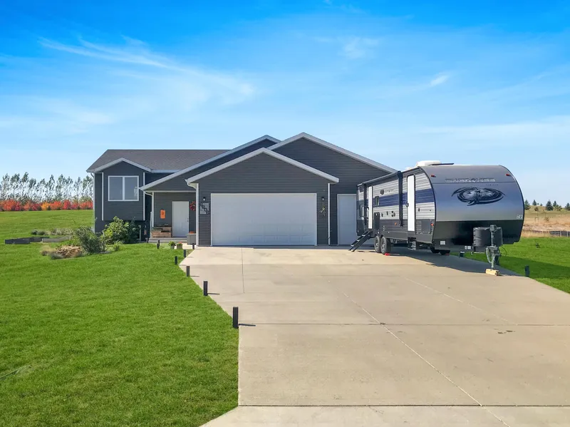 Welcome Home and enjoy quiet country living on a sprawling 1.5 acre lot! Inside you will find a spacious open concept floor plan with vaulted ceilings in the living, dining, and kitchen area. The large kitchen offers stainless steel appliances, touch faucet, tile backsplash, and an eat at center island. There is a sliding door off the dining room that leads to the large deck that overlooks the expansive west facing back yard. The upstairs also features an oversized master suite with a walk-in closet, a master bath with walk-in shower and linen closet. An additional bedroom and bathroom finish off the upstairs. The downstairs is partially finished with 2 additional bedrooms, a full bath with tiled floor, laundry room, and room to add an additional 5th bedroom (Egress window already in place!) or finish off the basement with an oversized family room complete with gas Jotul fireplace! The Triple attached garage is insulated, heated, cooled, has hot/cold water and a floor drain! The established yard has a garden spot, landscaping, and a well for exterior watering. There is even room to build a shop! Check out the attached virtual tour and contact a Realtor today to schedule a showing.