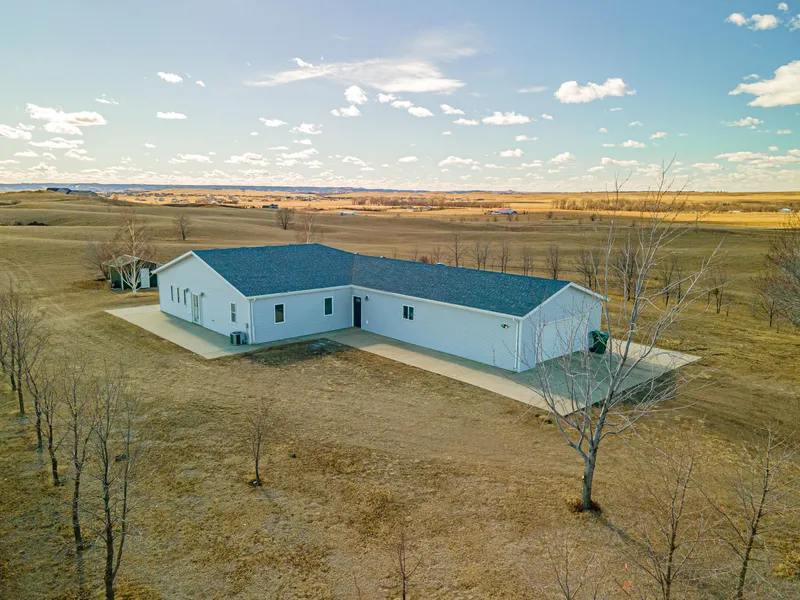 SUPER DEVELOPMENT POTENTIAL! This Patio Home sits on 40 acres. Must be sold with the adjacent 40 acres. Beautiful rolling hills perfect for grazing livestock, development, or just enjoying it yourself! Home was built in 2002 with a major addition in 2007. The Home has a wide open feel and has a concrete patio which extends around the entire house - enjoy any day out of the wind or sun! This concrete was built with footings so is very solid! The kitchen has a pantry, plus there is tons of storage in the laundry area. The master suite has a gorgeous bath with jet tub and custom tiling. There are 2 additional bedrooms and a full bath with a heat lamp. Wonderful family room area with space for games, carve out an office spot or for exercise. There is a very cool sunken spot for movie nights! (Has port and hookup for future fireplace-not hooked up tho.) Property features a shed plus trees have been planted. Note the evergreen trees planted in each corner of the property.