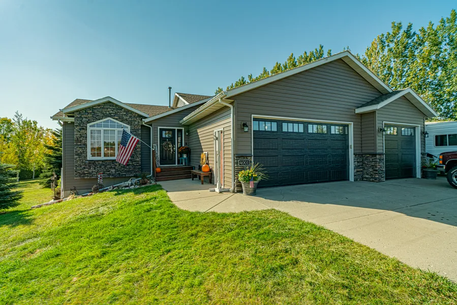 This 4 bedroom home is situated on a private, tree lined 1.5 acre lot, just minutes from town. Once you walk in the front door, your first impression of this home just might be the abundance of natural light that fills the main floor. The kitchen features oak cabinets, a large pantry, and space for counter side seating. This multi-level floorplan has a master bedroom with full bath and walk-in closet, 3 additional bedrooms, and 2 additional full bathrooms. The lower level family room has a gas fireplace, and walks out to the beautifully landscaped back yard. The backyard is a private, welcoming entertainment space with an above ground pool and firepit area. There is also a parking pad right next to the 3 stall garage. Call today for a private showing.