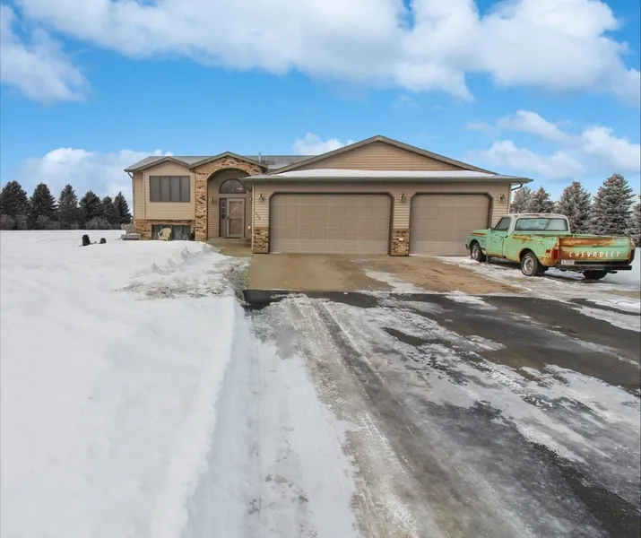 This beautiful property surrounded by mature trees in rural Bismarck with Main Floor Laundry! The kitchen is a open with center island, granite countertops, tiled backsplash, upgraded appliances, and patio doors to the backyard where you will find an abundance of wildlife! The nature light on the main level highlights the master suite with the fireplace, and full bath with soaker tub and separate shower! Head to the lower level and you will find a spacious family room an additional fireplace! 2 bedrooms, full bath and storage. Triple stall garage provides additional storage space. Start enjoying privacy living today.