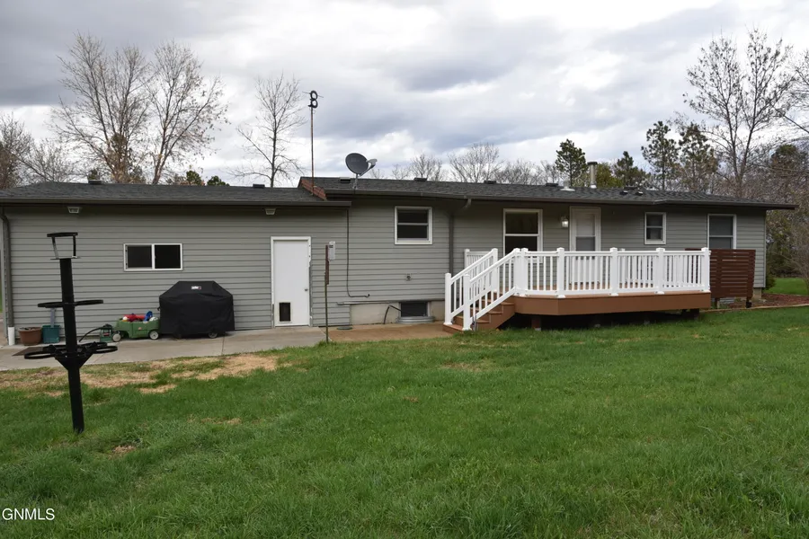 PRIVATE SETTING ZONED FOR HORSES just minutes from Bismarck! This beautiful 3.38 acre property is surrounded by mature trees. The home features 3 bedrooms on the main level, large kitchen area with a pantry and an abundance of cupboard space, large living & family rooms both with recessed lighting, primary bath, and additional 2 bedrooms (1 is non-conforming) in the basement. Updates to the home include steel siding, (2) maintenance free decks, updated windows & bathrooms. The detached double garage is heated, has hot & cold water and overhead storage. The setting is ideal for a hobby farm..... close to town, out buildings, private & peaceful. Don't miss out! Call today for a private showing!