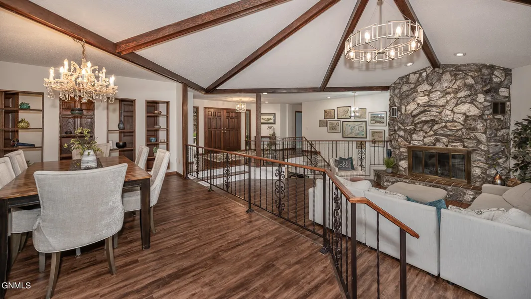 Once in a lifetime exclusive home in a prime NW location with a BEAUTIFUL view of Clairmont Conservation Park! The majority of the interior of home has been completely updated! One of the largest lots in the metro with over 1 acre, highly treed with many deciduous and evergreen trees like your own private woods so UNBELIEVABLY PRIVATE! It even has a tiered back lot with steps that lead to a private secluded unparalleled view of the valley. WOW!! the newly refinished original solid oak double doors greet you into an expansive foyer, open living room and dining area with a unique star inspired beamed ceiling, a striking design that will get the oohs and ahs! Your eye is immediately drawn to the VIEW of the valley! Floor to ceiling windows encompass entire wall for that true WOW factor! Three bedrooms on the main level including a large primary suite with large windows facing the valley and a newly renovated primary bath with custom tiled shower. The main bath offers a serene palette with a custom tiled large, deep bathtub. All bedrooms are very spacious with double and triple closets! Kitchen was just recently refinished with professionally painted cabinets, new quartz countertops and butcher block counter. It offers a cool farmhouse style porcelain backsplash. Patio doors are flanked by additional floor to ceiling windows to appreciate the view. As if the kitchen didn't have enough cabinets, off the kitchen are two large pantries for extra essentials and household supplies as well as two coat closets one in hallway and foyer. From garage, turn right to a newly designed mudroom/drop zone with plenty of cubicles for 'stuff'! There is so much storage in this home, a dream! The entire basement has been completely remodeled. Huge windows in every room make this the brightest lower level home you've seen a long time. There's three bedrooms downstairs including a SECOND primary suite with three large closets including a cedar one! The large family room features a red rock fireplace from western ND and has a large wet bar. It offers a walk out to a large concrete patio surrounded by trees for a private, exclusive entertainment area. There are large windows everywhere on the south side of home to enjoy the beautiful landscape. A spacious bonus room with workbench and cabinets for a game or hobby room! Off that room is a large storage area with tons of space. That's right you see it.... A WINE CELLAR. So cool and unique. Like your very own tasting room! This truly is an exceptional home you must see to truly appreciate its unique glory! Make sure you call your favorite Realtor today for a private showing. Agent/Owner