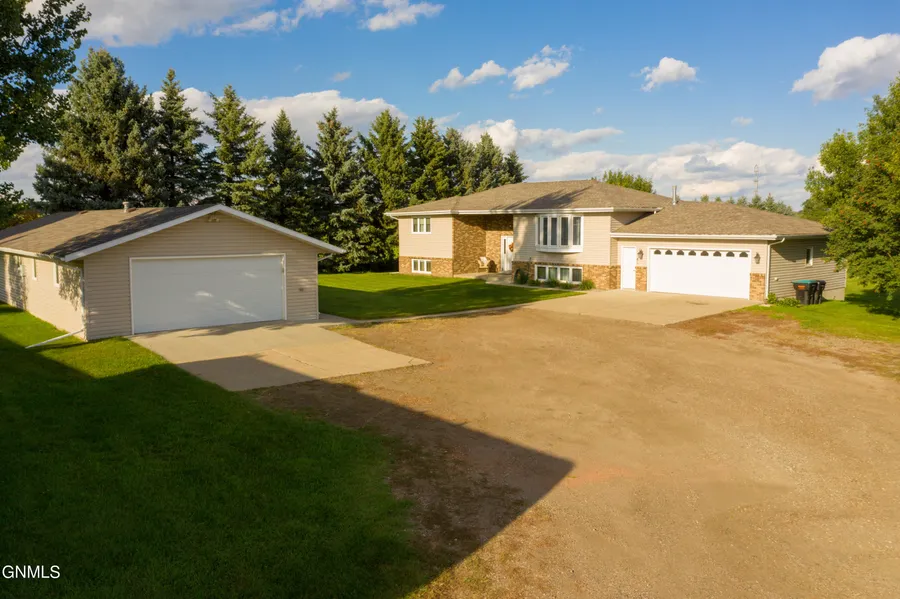 Welcome to 1300 Crestfield Ave nestled in rural North Bismarck on 2.93 acres! This 4- bedroom 4 - bathroom home offers the perfect blend of rural living with the conveniences of the city. Just north of Costco and by the soon to be completed Fleet Farm on Highway 83. This home is zoned Single-family/ Owner Occupied and setup as an over under duplex. The main floor offers 2 spacious bedrooms, 2 bathrooms, kitchen, dining, living and laundry. The lower level has a very similar layout with a large family room with a gas fireplace and a walkout to the spacious concrete patio! This would make an ideal IN-LAW SUITE! Wonderful private yard with mature trees, garden area and Hay Creek running through the back of the lot. You will love the extra SPACE in the 26' x 60' heated shop. There is a half bathroom in the shop, floor drain plus a back storage room / workshop! Ideal for those seeking a private country lifestyle while still being close to all the amenities of North Bismarck, this home is a rare find. Don't miss out on the opportunity to make it yours! Contact an agent today to setup a private showing. Truly a well-cared for home with many recent updates to include Windows (23') Flooring (19'), Carpet (24'), Septic (20') Updated Furnace & A/C. Siding and Shingles replaced in 2015. Just on the edge of town with tremendous opportunity!