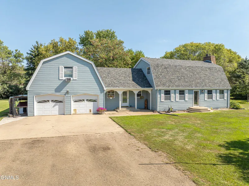 **With an acceptable offer seller is offering to pay $10,000 TOWARDS BUYERS CLOSING COSTS to use for updates in the home or for whatever they choose after closing!!** You won't want to miss this unique and charming home nestled on a beautifully landscaped, private lot located just minutes from Bismarck. The main floor offers tons of living space and all of the walls were freshly painted in 2025! The main floor family room also has new laminate flooring and the living room has new carpet and a wood burning fireplace for those chilly nights. The large kitchen has tons of great work space and cabinetry and the spacious dining room is perfect for gathering with friends and family. There is even a half bath on the main floor for guests! Step up the main stairway and you will find more freshly painted walls and new flooring in all 3 bedrooms, one of which is the master suite. The large master suite has new paint top-to-bottom and new carpet for comfort for your feet and also offers double closets and a 3/4 master bath has new paint, new vinyl tile flooring and a skylight! Step up the second stairway to the living space above the garage you will find more freshly painted walls and new carpet for the bedroom (which could also be used as a family room) - and a 3/4 bath with new paint, flooring, and tiled shower! There is also a storage space/mechanical area for the second furnace (which connects to the second central air). Step down to the basement and use your imagination as there are so many possibilities! The space is mostly unfinished, but there is a partly finished nonconforming bedroom/office if you need more space immediately. The basement also houses the laundry room with washer & dryer included and mechanical area for the main house furnace and water heater. If you are looking for garage space, you will like the oversized 2-stall insulated, attached garage which has a service door and the attached cabinetry is included! There is also an oversized single-stall detached garage which has its own electric meter and panel - plus a gravel parking pad on the east side. If you need additional storage, there is also a large shed with sliding door that could also make a great playhouse! If that is not enough, you will LOVE the beautiful, landscaped, treed lot that this home is nestled upon. There are beautiful perennial beds, a playhouse/fort, freshly stained rear deck (which was new in about 2019!), patio, and gorgeous mature trees - as a bonus, the additional patio pavers on the property are included so you can use them and design your own additional outdoor spaces! In addition to the recent interior updates, other big recent updates include: NEW class 4 shingles (2023), NEW septic system and drain field (2023), and rear deck (approximately 2019). Sellers know that while the furnaces and water heater work great, they are older so as a bonus sellers are offering to provide buyers with a 1-YEAR HOME WARRANTY at closing! Home is being sold as-is, whereis. Don't wait - call a REALTOR today to schedule a private showing of this wonderful home.