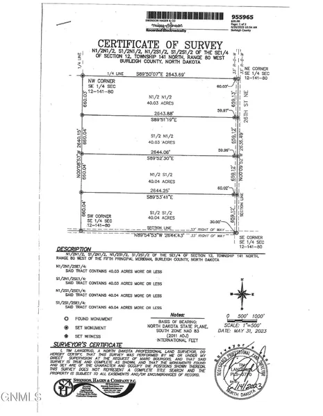 Pastureland zoned AG, small amount of tilled cropland - Lot of potential building sites, would make very nice hobby farms, property close to Bismarck - taxes, street address, and parcel number to be determined. Street address to be determined. Renters retain rights to cropland and pasture until 30th of November. There is a steel post painted orange on the corner of the lot marking parcel.