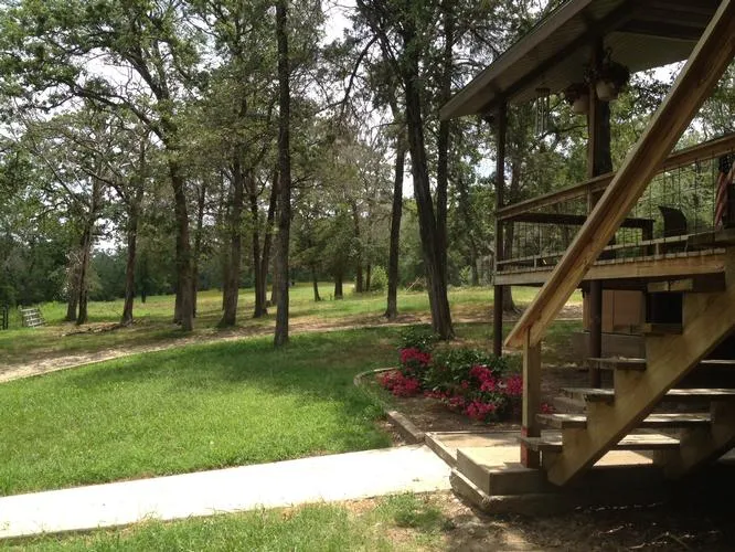 Hidden by the hillside and the huge Oaks that ouline the property this home has a feel of being deep in the woods, but it's just minutes from town - Caldwell and Bryan/College Station area.