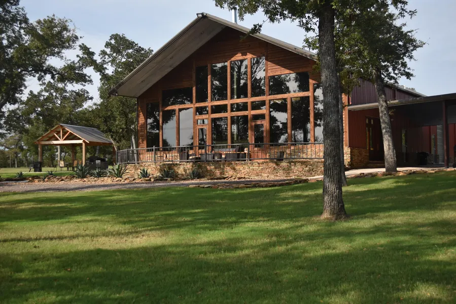 Just minutes to Brenham and Bryan/College Station - this is a wonderful and convenient get-a-way! 70 beautiful acres - MAIN House has a warm rustic style and features beautiful open kitchen with island seating, incredible rock wood burning fireplace, 4 bedrooms, 3.5 baths, oversized covered back porch overlooking the private stocked lake, fishing pier, and an outdoor entertainment pavilion complete with Evo grill, bbq pit, smoker and large flat screen television. The GUEST HOUSE has an elegant modern style with just enough rustic touches to make it cozy and unique. Furnished with everything you need to entertain - shuffleboard, pool table, wet bar, and huge rock and iron wood burning fireplace. The perfect spot for everyone is here!
