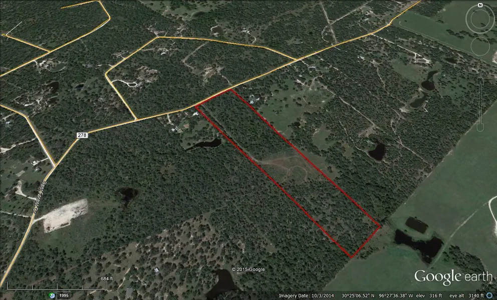 +/-21 wooded acres in Burleson County, hardtop frontage on CR 278, electricity in the area, seasonal creek, slightly rolling topography, minerals negotiable.