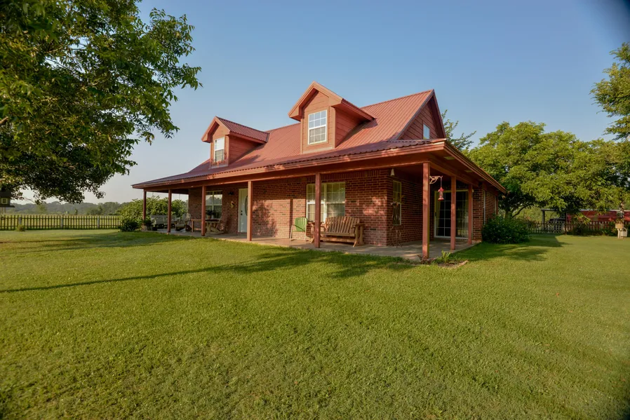 Scenic winding driveway will lead you to this beautiful 81 acre dream ranch! This property has a 4 bedroom / 3 bath farmhouse with a wrap-around porch that has amazing views. Rolling hill pastures surround you! There are 7 nicely cross fenced pastures, 2 stocked tanks, creek, 30 x 75 barn with 2 stalls, hay storage, tack room, workshop, 20 x 30 equipment shed, shed with ramp for additional storage, and 2 chicken coops. All buildings have electricity and running water. Well water or city water available for use. Riding trails and good hunting just beyond the pastures in the wooded acreage. Enjoy the fresh fruit off your pear, pecan, fig, and plum trees. Hay meadows contain 40 acres of coastal and bahia grass. This property is ag-exempt and ranchers are currently running 25 pairs of cattle. At one time, up to 100 feeder cattle were run on this property. Farmhouse has a great floor plan with two bedrooms downstairs and two bedrooms with bonus room upstairs. Lots of closet storage and natural lighting throughout! Enjoy rainy days as you listen to the rain on the metal roof. The porch is perfect for entertaining or just drinking a glass sweet tea. Country living at its finest! Truly a must-see property! Book your appointment to see it today!