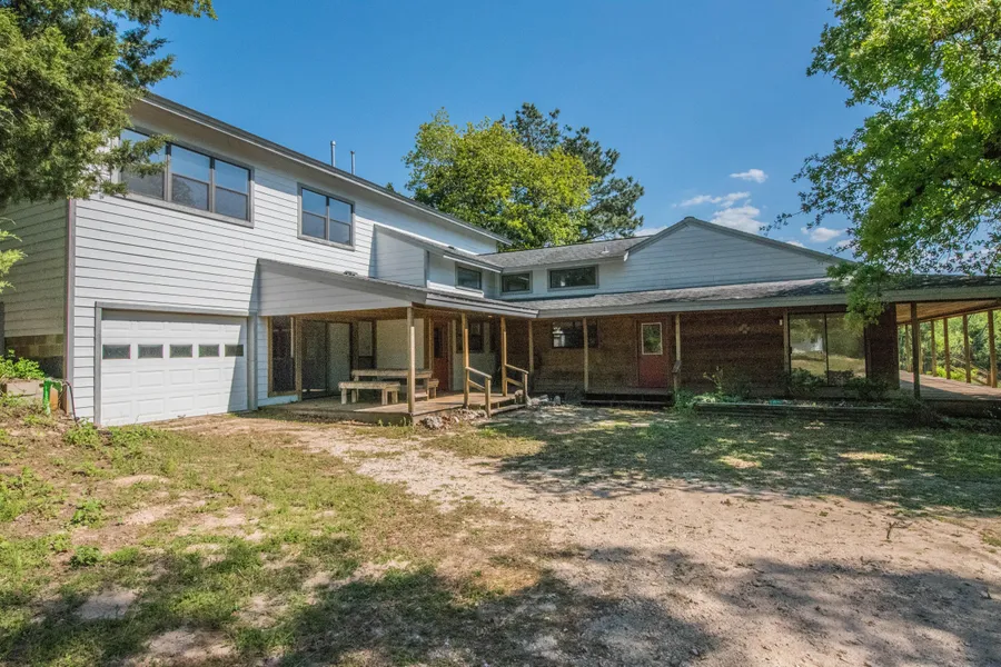 A great COUNTRY ESCAPE - +/-63 Ag-exempt acres with PAVED frontage, Hilltop VIEWS, nice POND, rolling PASTURES, heavy WOODS, and a spacious ready to enjoy CABIN/HOME in the middle of it all? The home can easily be divided into two living quarters each side complete with private kitchen, multiple bedrooms, comfortable living spaces, separate bathrooms and exterior porches. The concrete block 2-story shop/barn is nicely suited for storage and equipment parking and the upstairs is already roughed in for additional living/office space if needed. Less than 35 minutes to A&M's Rellis Campus and only 15 mins to Caldwell, the property offers convenient country living.