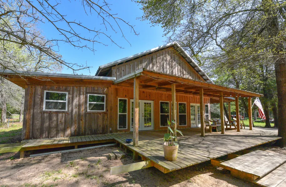 Wooded ACREAGE, rustic ranch HOUSE, secluded QUIET location, PAVED frontage, and tons of WILDLIFE to watch off your front porch - ALL this within 45 minutes to TAYLOR, 10 minutes to CALDWELL, and 45 minutes to BRYAN/COLLEGE STATION. The land offers a large selection of TALL oaks and pines, a wet weather CREEK, and tranquility only found in country living. The home is a worthy project for the handyman. Originally planned as a 2-story home with bedrooms up, the decision is yours - finish out for guest accommodations or use as attic storage. This house is the perfect blank canvas to make your own. This home offers a large 70 X 30 slab, with 2 bedrooms and 1 bathroom, large open kitchen and living room space with 10 foot Ceilings, a spacious laundry room, an approximate 30 x 30 foot attached garage/SHOP area, and a huge covered front porch. The property additionally offers a large 30 X 16 insulated storage building and an RV hook up. Dont miss your chance to live on this property that has it all!
