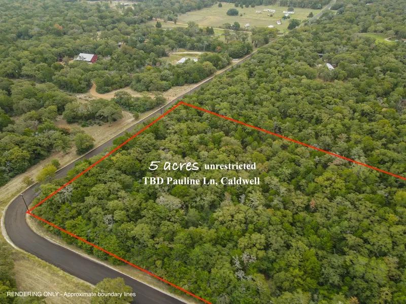 CORNER LOT - Beautifully wooded lot of 5 acres. UNRESTRICTED, so endless possibilities here, from building a new home or making it your country retreat with an RV or manufactured home. With ELECTRICITY and WATER available. Recently PAVED county road for easy access. Plus, the location is great. Only 15 minutes from Caldwell, and 30 minutes from Bryan/College Station. Don't miss this opportunity!