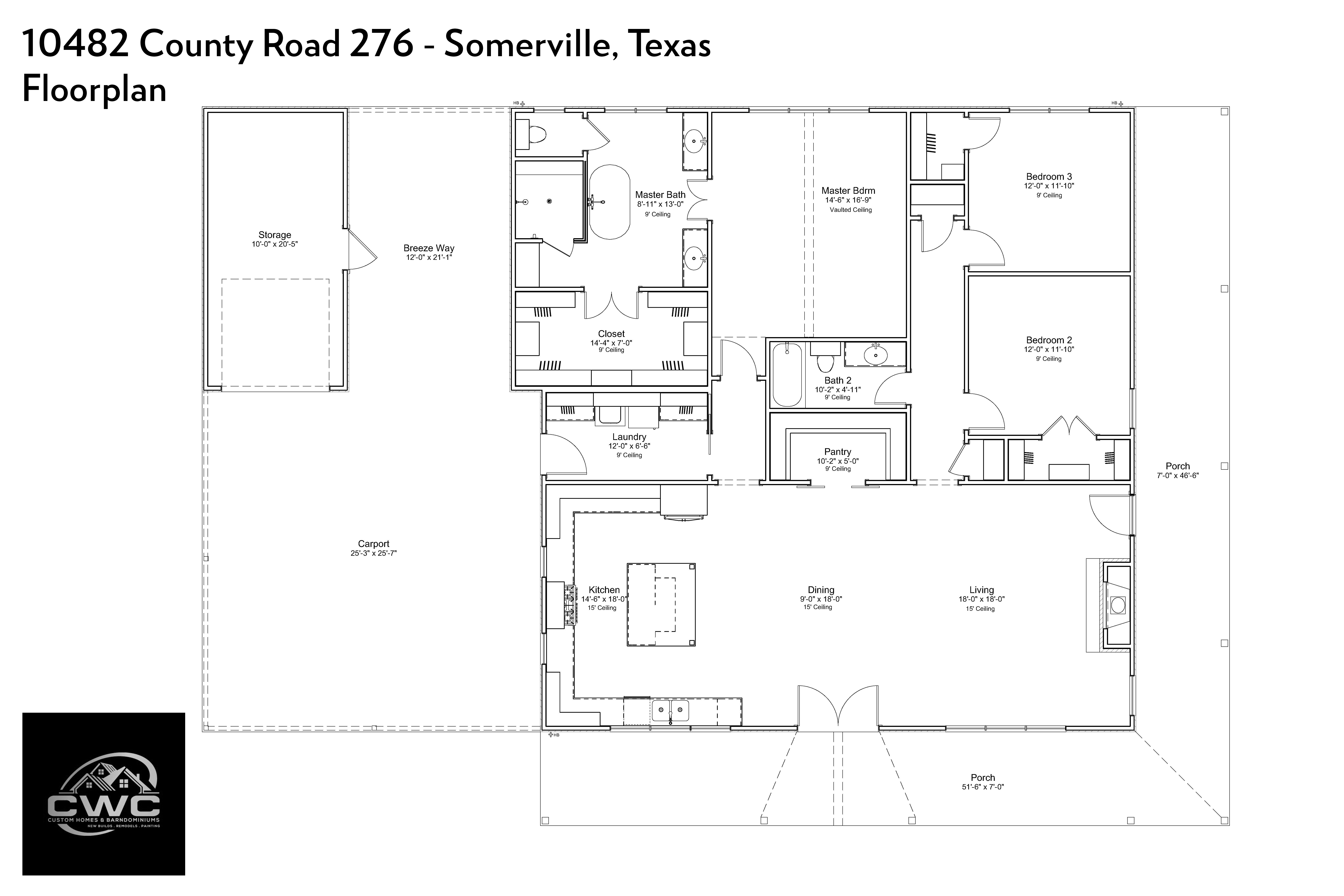 New Build Barndominium on 2.49 acres in Heritage Oaks Subdivision. This beautifully designed home offers 2,100 square feet of living space with 3 bedrooms and 2 bathrooms, combining modern features with rustic charm. The exterior showcases durable metal siding and roof, accented by a stone facade that adds curb appeal. A gated pipe entrance leads to a long caleche driveway, carport, and a small attached shop or garage for added functionality. Inside, the main living area boasts soaring 14-foot ceilings, a wood burning fireplace, and stained cabinetry with stone countertops. The open-concept layout provides a spacious feel, ideal for both entertaining and everyday living. The kitchen comes equipped with appliances, offering move-in ready convenience and large walk in pantry. The vaulted primary suite is a highlight, featuring massive windows that bring in natural light and showcase the scenic surroundings. The primary bath includes a large walk-in closet and custom finishes. This barndominium offers privacy, quality craftsmanship, and a rare opportunity to own a new construction home in a desirable rural setting. A must-see property for buyers seeking space, style, and comfort just outside of town.