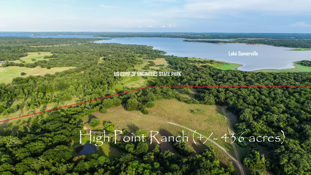 On the edge of 18,300 acres of US Army Corps of Engineer land and the 11,460 acre Lake Somerville, HIGH POINT RANCH offers meandering creeks, heavy woods, small open areas with thick native grasses, miles of traversing roads and trails, multiple hilltops and ponds. Because of the quiet and undisturbed surrounding acreage, the ranch has become home to an abundance of native wildlife. White tail deer and other species trail in and out of the dense wooded areas of the neighboring state park. Lake Somerville is specifically managed with public recreation and environmental stewardship as its primary purpose. Country settings don't get much quieter than this. It's a hunters dream, with multiple build locations, easy to divide, and centrally located between Bryan/College Station, Austin and Houston - this is a great place to escape!