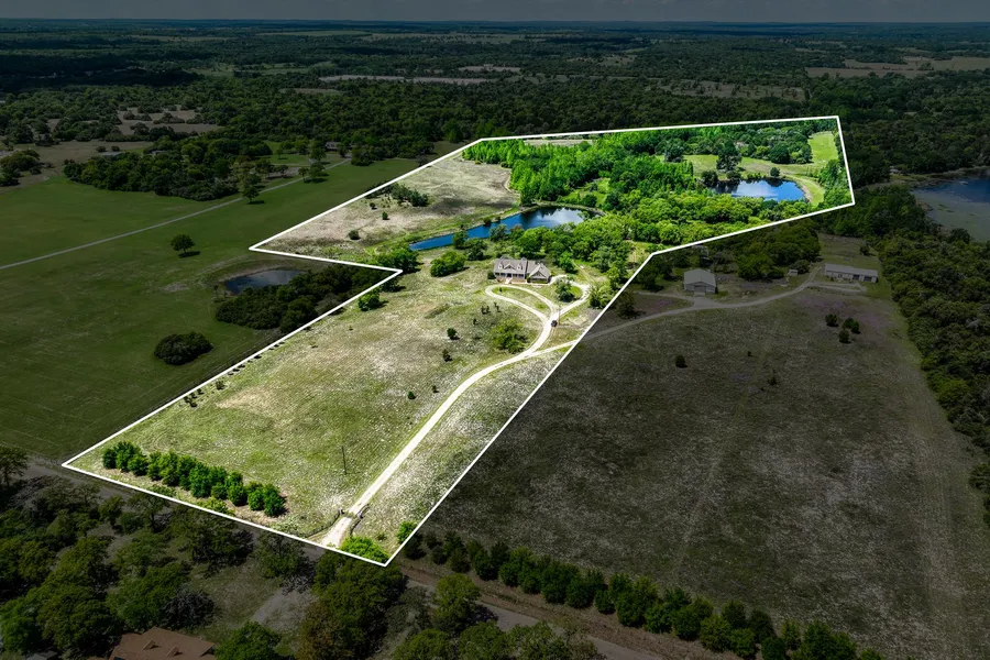 Enjoy 54 wildlife exempt acres with 2 spring-fed stock ponds. The 3,733 SQFT home boasts 4 bedrooms and 4.5 bathrooms featuring custom built-ins throughout. Large windows allow for amazing views of the rolling pasture land. Spacious kitchen includes custom cherry cabinets, gas cooktop, and double oven. This functional floor plan incorporates oversized bedrooms for increased space and storage. Other amenities include: sunroom, office/study, laundry room & mud room. Additional property features include: 3-car attached garage with work bench, Fishing Cabin with electric & septic, 2 tankless water heaters, 3 high-efficiency HVAC systems, gated entrance, and much more! This property sits just 25 miles from College Station, with easy access to HWY 21 & HWY 36. Do not miss out on your chance to establish roots in the heart of the Texas Triangle!