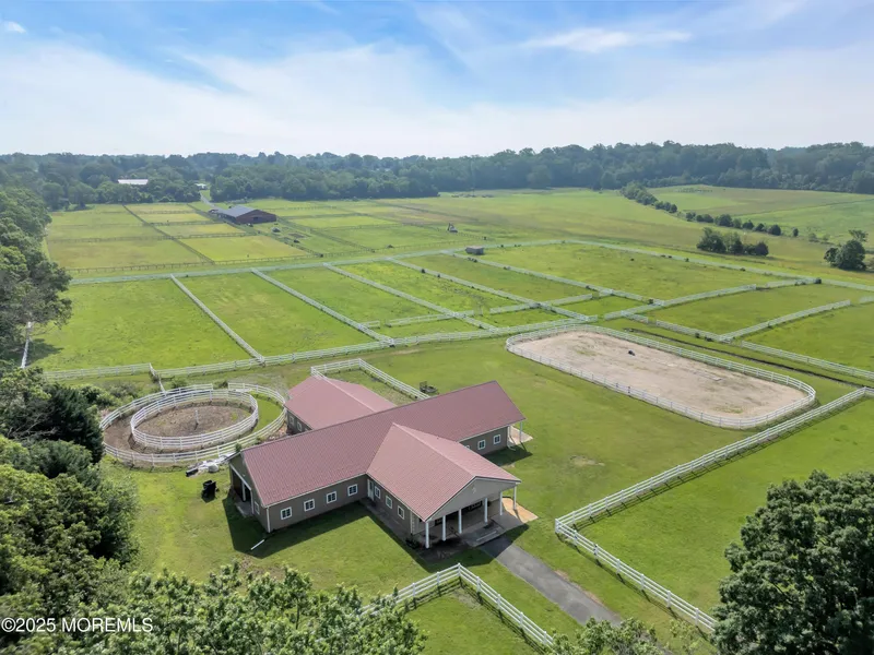 An incredible EQUESTRIAN PROPERTY with 20 STALL BARN & 2 RESIDENCES... a dream come true! Welcome to this truly spectacular horse farm situated on 15.05 ACRES of stunning rural scenery with exceptional views in Burlington County! This stately HORSE FARM PROPERTY is truly a showplace! This turn key FARM ASSESSED PROPERTY is an amazing opportunity for an equestrian operation or agricultural endeavor! Luxurious equestrian amenities! The grand custom center aisle HORSE BARN in cross pattern design hosts 20 STALLS featuring an indoor wash stall w/ hot/cold water, tack room, feed room, grooming area, hay/equipment storage area, utility area & outdoor wash stall w/ BONUS custom climate controlled office/bar. Enjoy your OUTDOOR ARENA, train in your ROUND PEN or trail ride along the perimeter of the property... this farm can accommodate any equestrian discipline! Lush fenced paddocks & grazing pastures encompass the majority of the property creating an incredible haven for any horse or farm friends. Your new lifestyle awaits as you enter the custom 5 bedroom, 4 full bath CUSTOM BRICK HOME with farm views from every direction. Step into a home that is refreshingly bright & airy, a unique architecture style of an upgraded traditional split level style that evokes trendy yet modern country living with fine custom finishes. A designer's dream... magazine worthy! The focal point of the home is the delightful open concept space spanning across walnut floors which combines the panoramic living room w/ tempered glass Andersen floor-to-ceiling windows & wood burning stove, central dining area & grand gourmet kitchen w/ luxury appliances (Italian 8-burner stove, wood hearth & twin built-in refrigerators!) & custom appointments (quartzite counters, walnut countertop island, dual farmhouse sinks!) into a space of pure enjoyment for relaxing & entertaining! BONUS custom wine room/sitting room w/ mesquite wood floor & wet bar & second kitchen/butler's pantry complete the main level! Venture upstairs to the next level which features a bedroom suite w/ vanity area & full bath; 2 additional bedrooms & hallway full bath w/ clawfoot tub & shower. Located on the top level of the home, the oversized primary bedroom suite features a sitting area, window seats, walk-in closet, additional closet & a gorgeous renovated full bath with custom canoe maker soaking tub, dual vanities & shower stall. Not to be missed, think guest suite or recreation area... the lower level includes a spacious family room, an additional bedroom, full bath w/ shower, laundry/mud room with exterior access & access to a partial basement for utilities & storage. The peaceful acreage creates a secluded setting to relax outdoors amongst the varying entertaining spaces which includes a patio & terrace overlooking the farm. Not to be missed is the SECOND HOME... a lovely 2 bedroom 2 bath farmhouse w/ living room, kitchen & laundry area. For those seeking to expand on their agricultural endeavors, this boutique farm could easily blend in herbary, apiary or winery activities or a farm activity of your desire. An abundance of open space yet still close to major conveniences such as commuter access to the NJ Turnpike. Experience the pure peace and tranquility of this delightful horse farm!