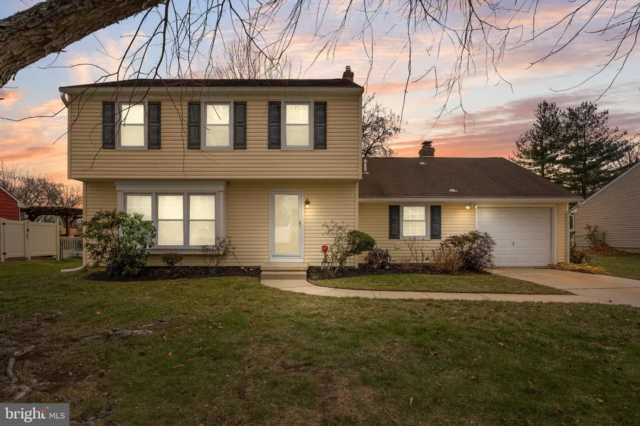 Welcome to this expanded 4-bedroom, 1.5-bath Oxford model in the highly sought-after Tenby Chase community. Lovingly maintained and clean as a whistle! From the moment you enter, tile flooring in the foyer leads into a bright kitchen featuring wood cabinetry and a casual breakfast area. Hardwood floors flow throughout the living and dining rooms, complemented by neutral paint throughout. Just off the kitchen, the spacious family room offers a classic brick fireplace with mantle, perfect for cozy evenings and direct access to the backyard and concrete patio, ideal for entertaining or relaxing outdoors. The first-level addition provides incredible flexibility and can serve as a fourth bedroom, home office, playroom, gym, or additional living space. A convenient laundry area and half bath complete the main level. Upstairs, you'll find three comfortable bedrooms with carpeting, including a primary bedroom with a walk-in closet and a separate vanity area. The thoughtful layout offers both functionality and comfort for modern living. Ideally located close to Philadelphia, schools, shopping, and dining, this charming home is one you won't want to miss. Schedule your showing today and imagine the possibilities!