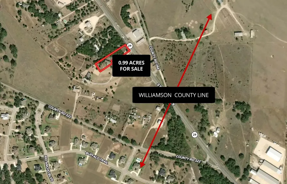 This acreage with home is located in a high profile location on Hwy 29 between Bertram and Liberty Hill.