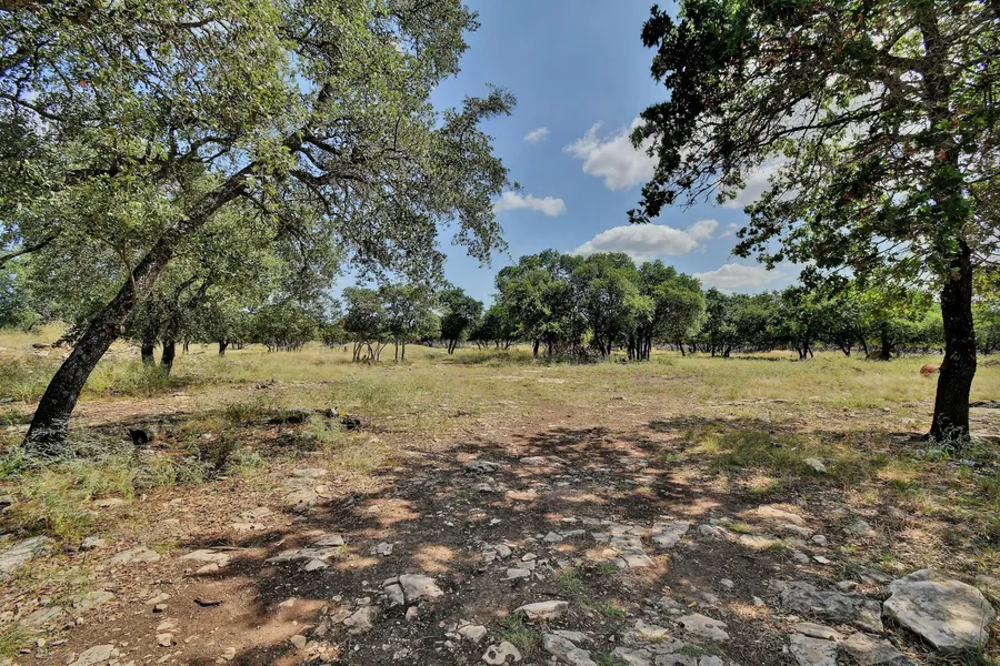 Come see this fenced, rustic, secluded 45.9 acres in the historic community of Oatmeal. This very private property has wildlife everywhere, and has an ag exemption in place. The modern barndominium (built in 2018) is just under 2000sq. ft. The other part of the barn has 1280sq ft. There's oak trees all over and enough grass for all of the animals. The well on the property provides the water, and the utilities are very reasonable with the well-insulated home. A great place to kick back & enjoy nature.