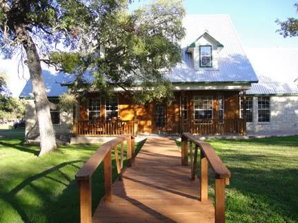 Scenic game-fenced Hill Country Ranch with a Texas Style Rock home, detached garage and guest apartment. The yard is lined with mature oaks and shady elms. A salt water pool and expansive deck are focal points for relaxed afternoons and family gatherings. Friends won't be hard to find when you put on the ball game in the barn's cantina. The ranch is fully game fenced where exotic game is constantly in view. A seasonal creek traverses the property and the tree cover is extensive without blocking the big views. A heated and a/c'd barn, 2,400 sq. ft. in size round out the package. Less than one hour from Austin and without equal.